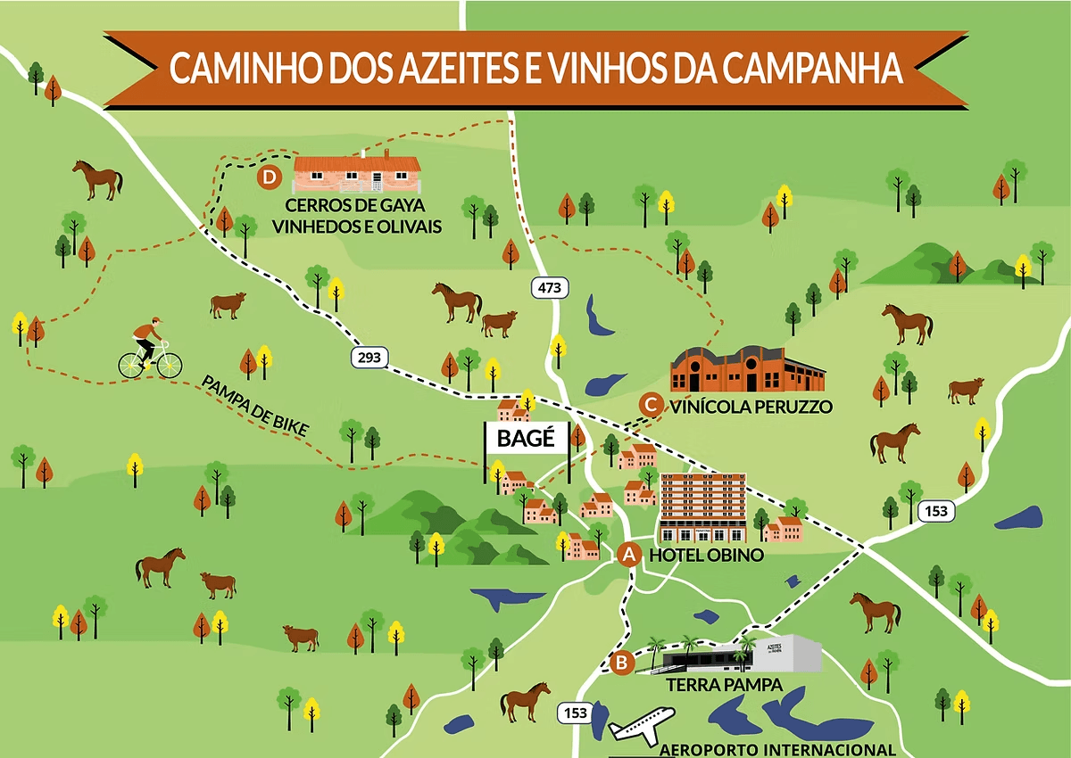 Localizada há apenas 12km do centro de Bagé, a Vinícola Peruzzo oferece passeio pelo seu processo de produção de vinhos, almoços típicos gaúchos, além de espaços para piquenique ao ar livre e um deck perfeito para apreciar as belas paisagens da Região da Campanha.